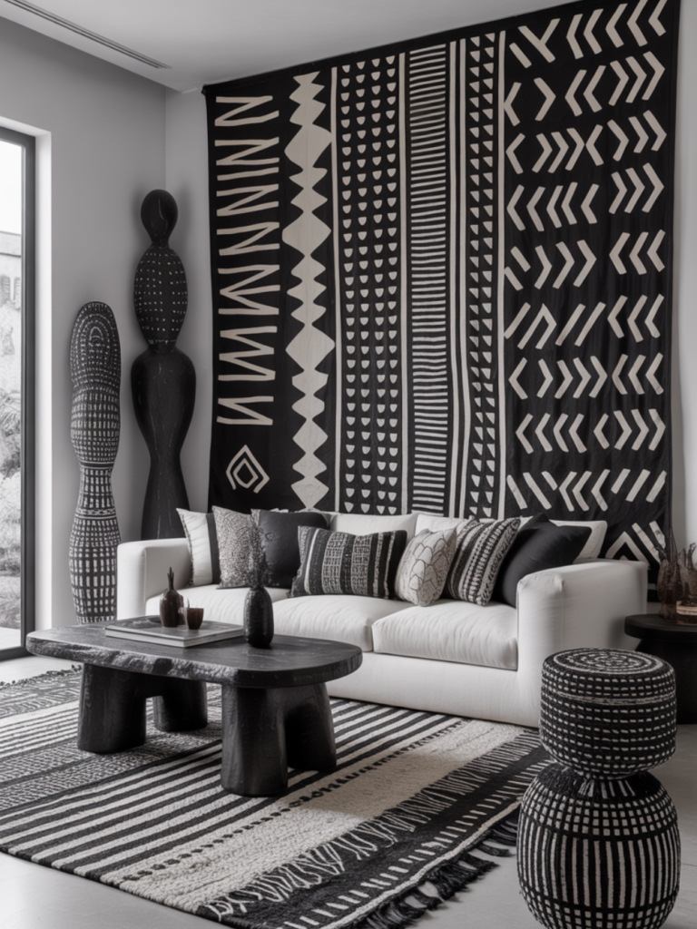 - Black and White Afrohemian Living Room: Bold Without Color