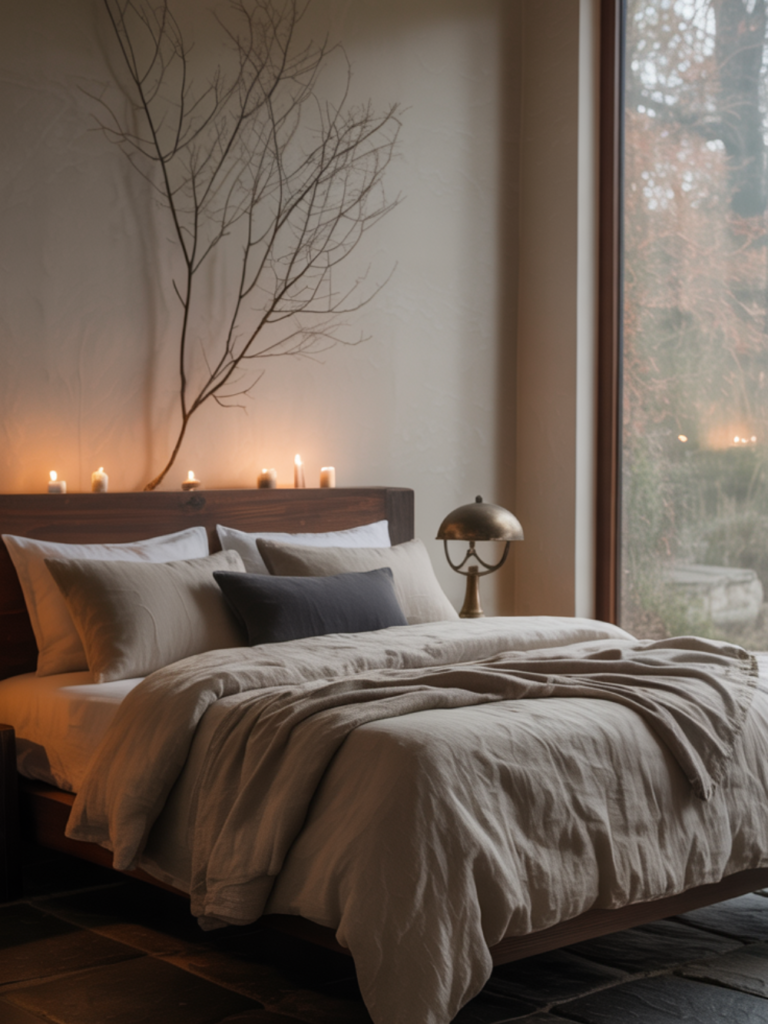 Decor is intentionally sparse. Soft, indirect lighting enhances the textures of natural materials rather than overpowering them. This style is especially suited for those seeking a simple, soulful bedroom that feels timeless and deeply calming.